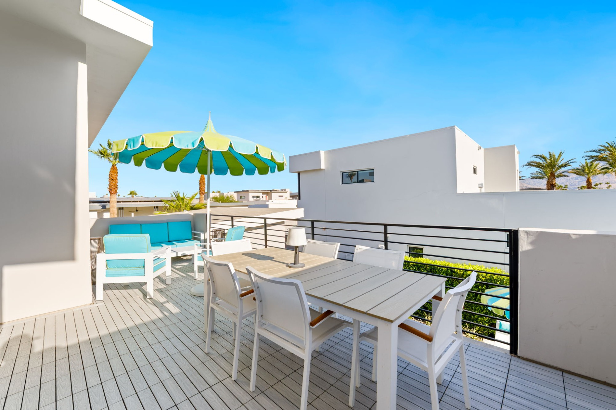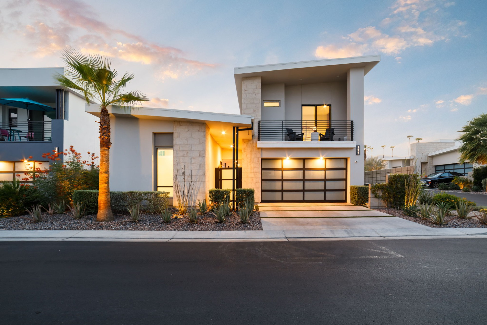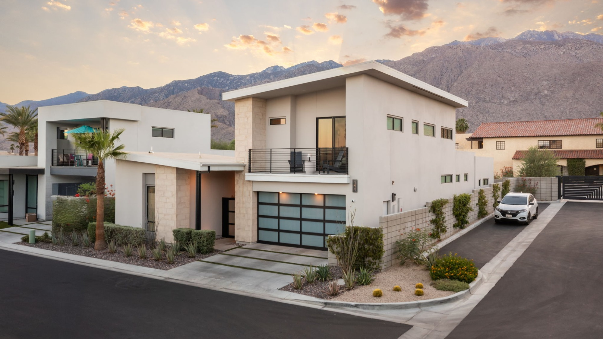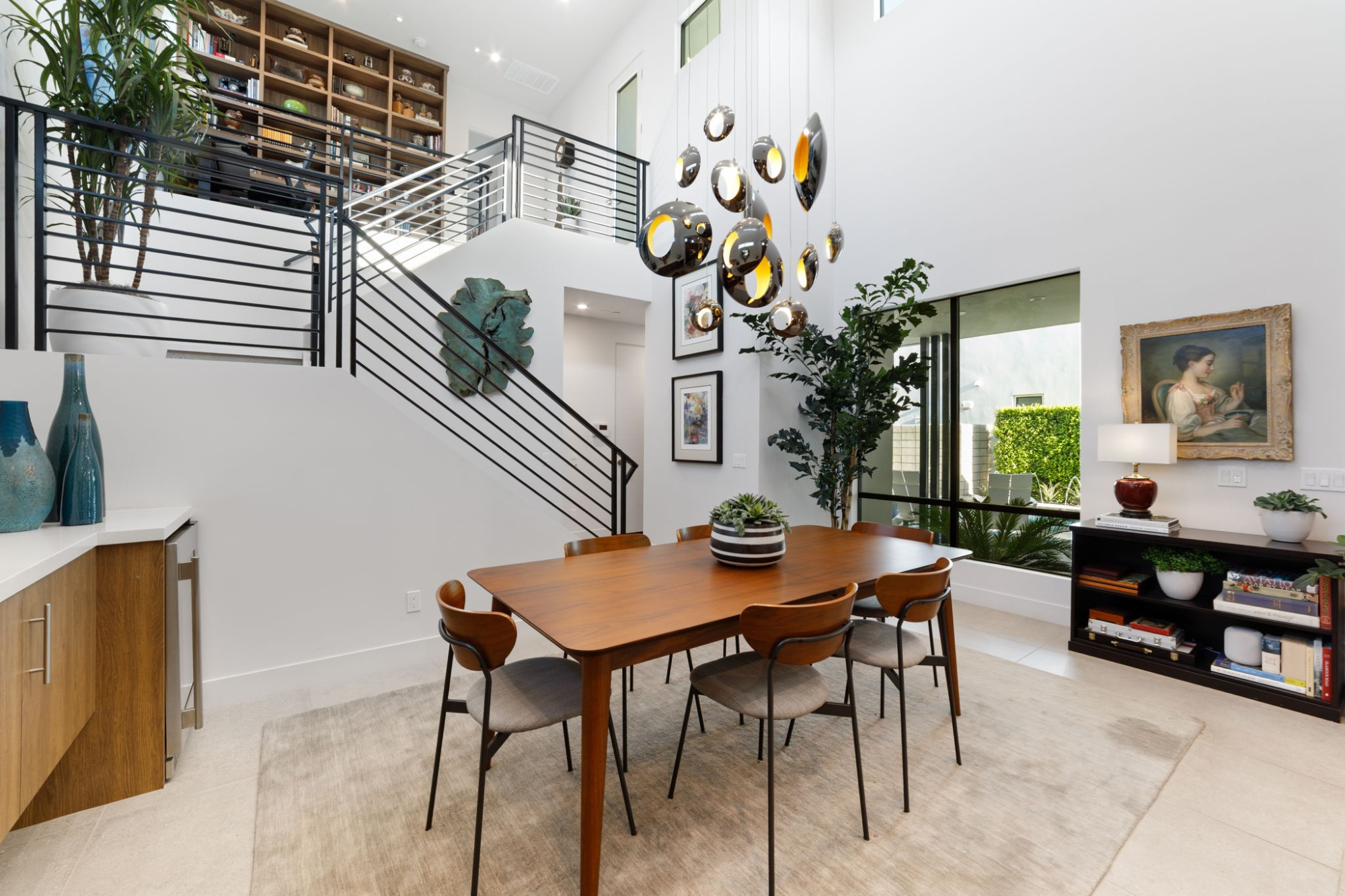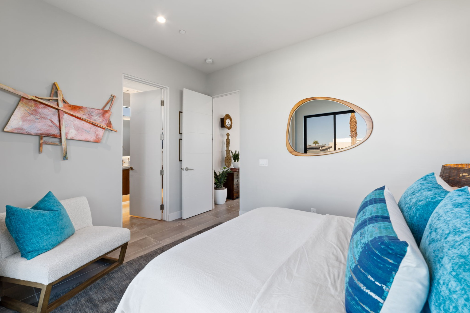 We are excited to introduce 111 Holliday Way, a stunning home in the recently completed Vue development in central Palm Springs. This former model home and end unit boasts one of the largest lot in the development and is ideally located within a pedestrian-friendly distance of downtown Palm Springs. This unique residence features three bedrooms, three and a half bathrooms, and a detached casita, perfect for guest privacy. It comes equipped with owned solar, a pool and spa, a built-in outdoor cooking area, and a two-car attached garage. Inside, you'll find numerous upgrades and thoughtful design elements. The dining area is highlighted by a modern chandelier and impressive 20-foot ceilings. The open-concept kitchen serves as a central gathering space, seamlessly connecting to the living area with a fireplace on one side and the dining area, which leads to an upstairs Library Loft, Private Bedroom and expansive Deck. All bedrooms are en-suite, providing comfort and convenience. The home includes multiple outdoor seating areas offering views both east and west from multiple levels and truly special views of Mt. San Jacinto. The home is located within a gated community and offers the new owner an abundance of privacy. Some furnishings are available outside of escrow, and a detailed list of upgrades is attached to the listing.