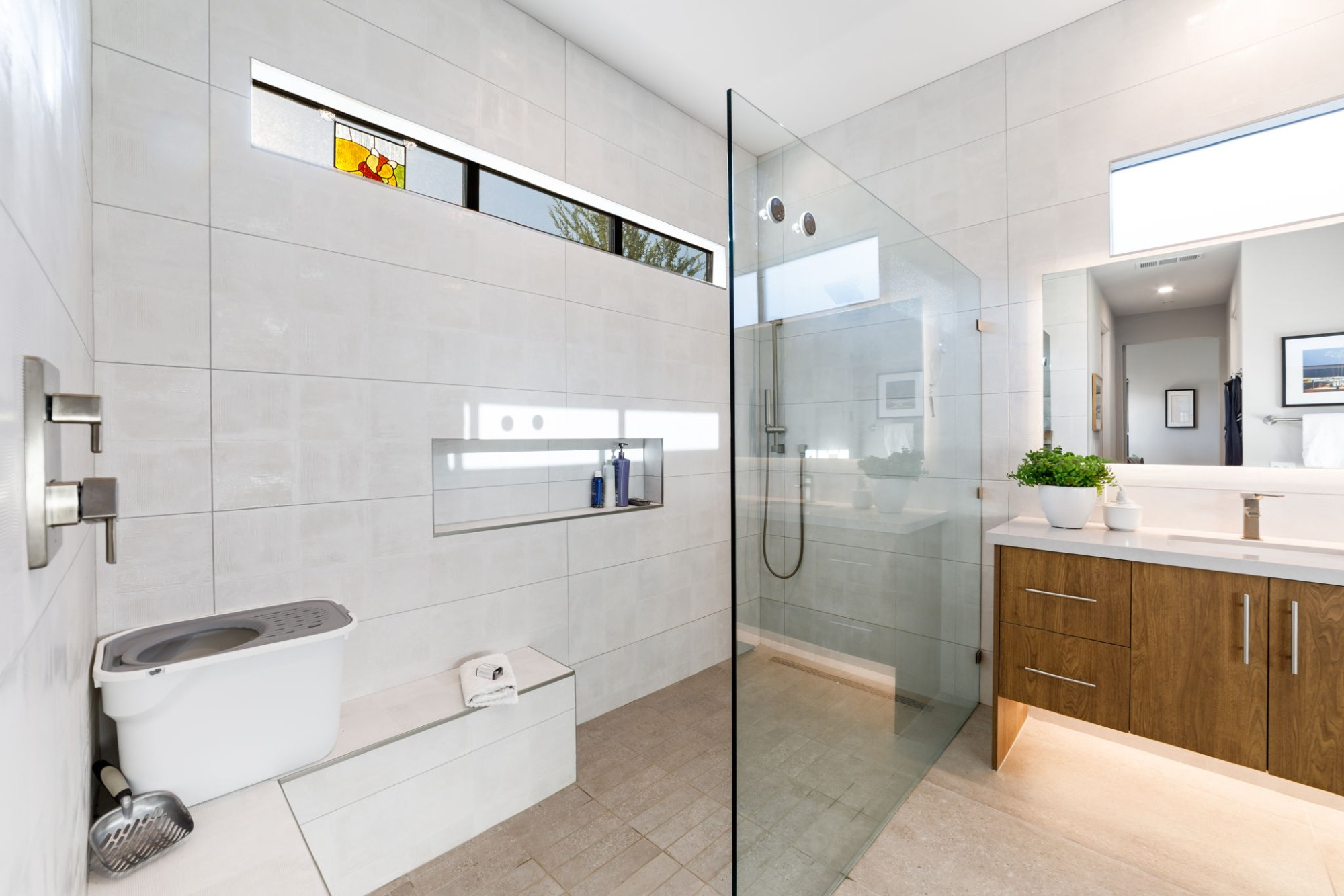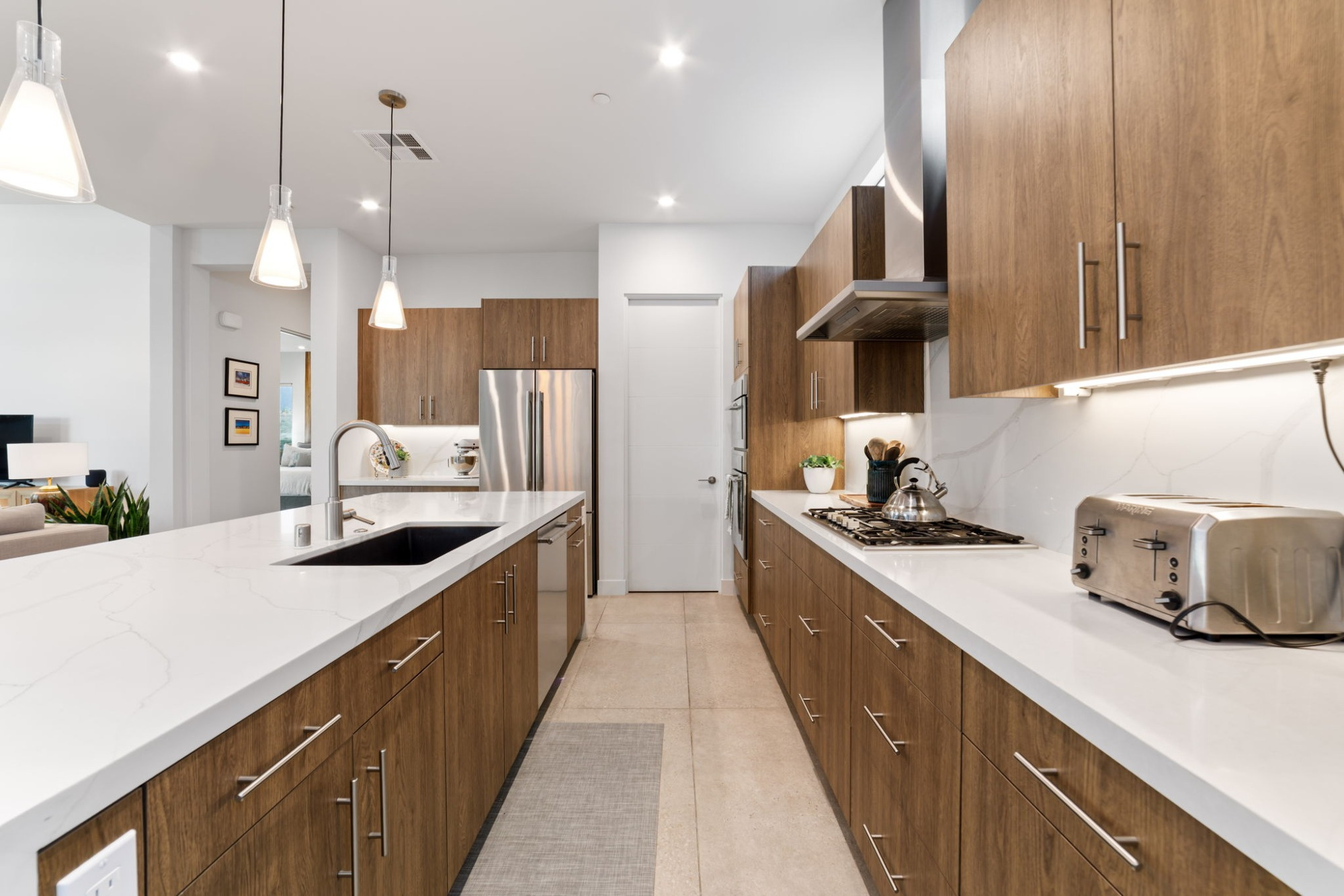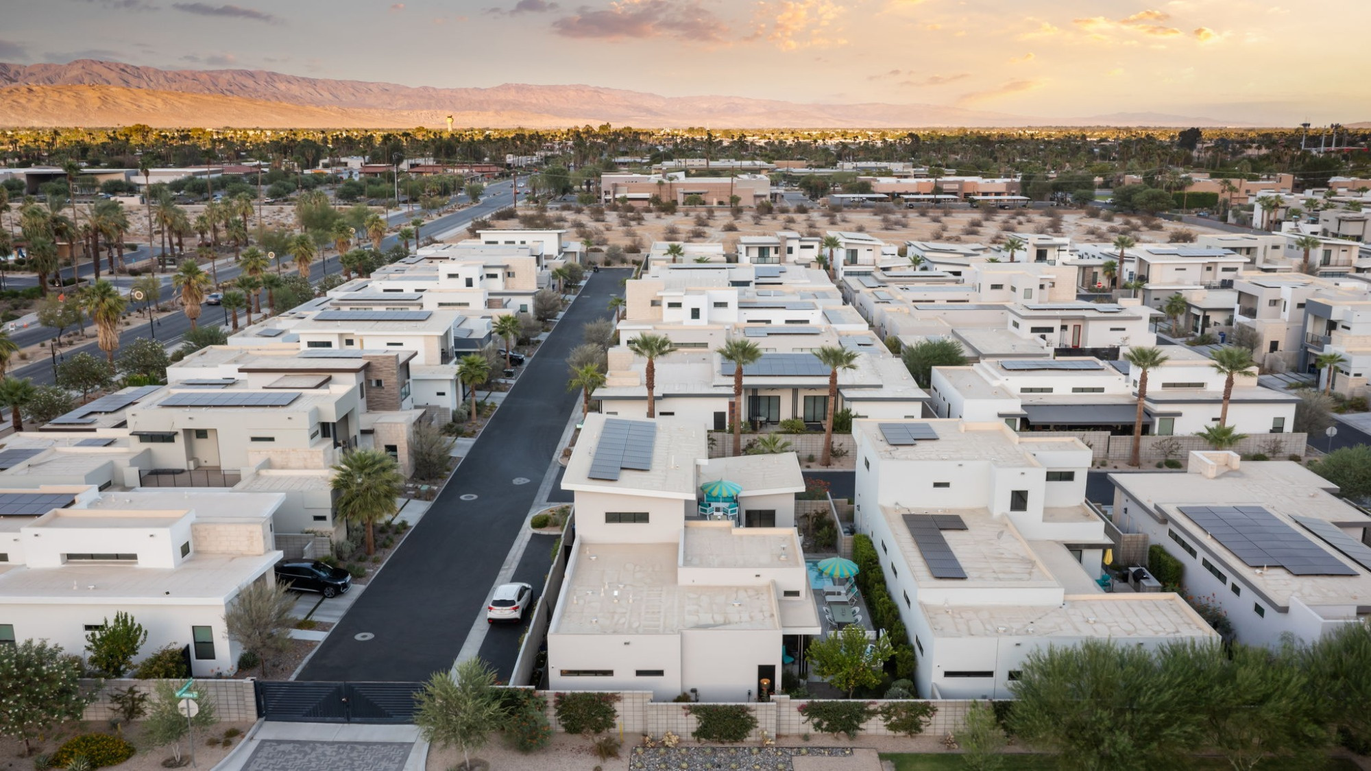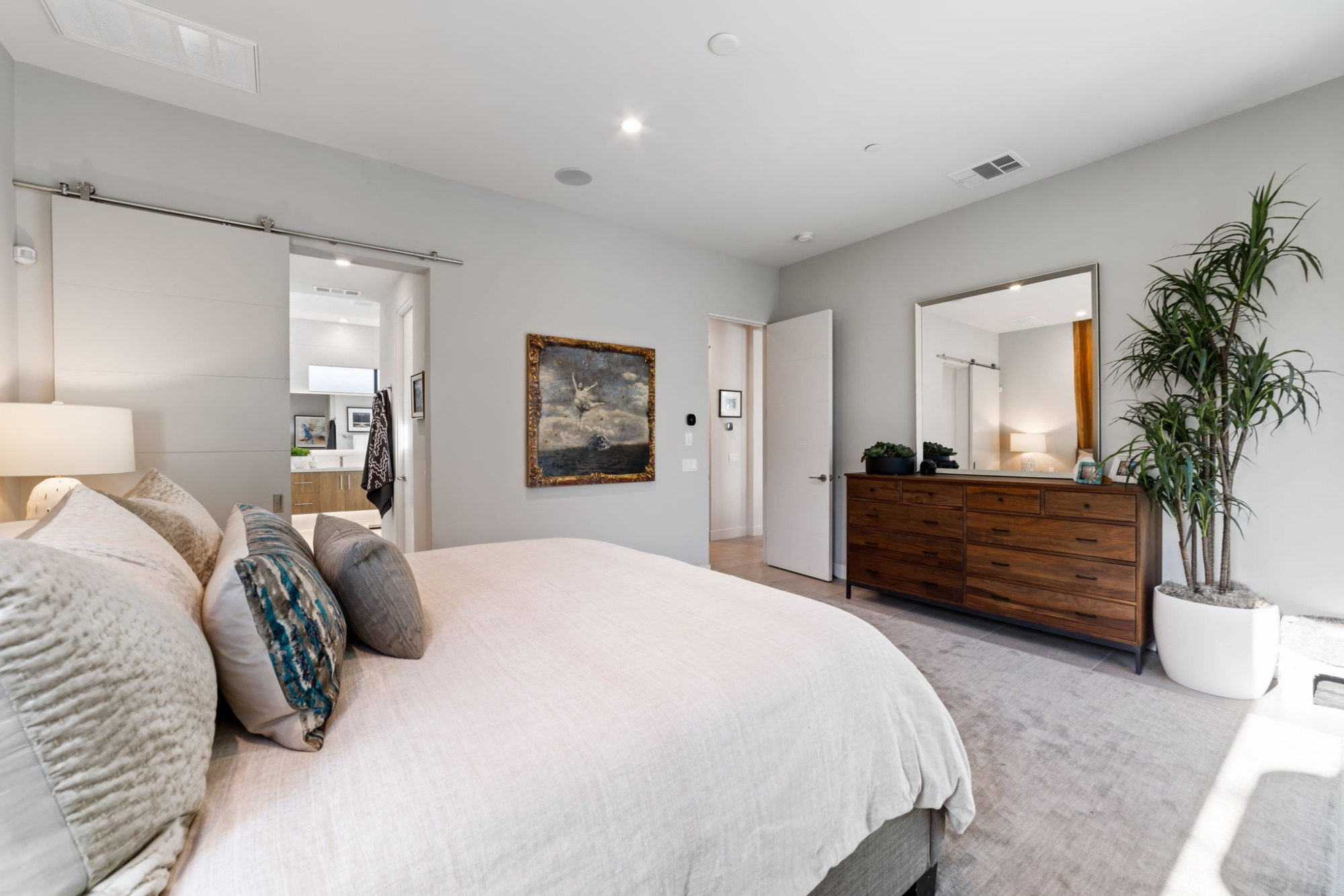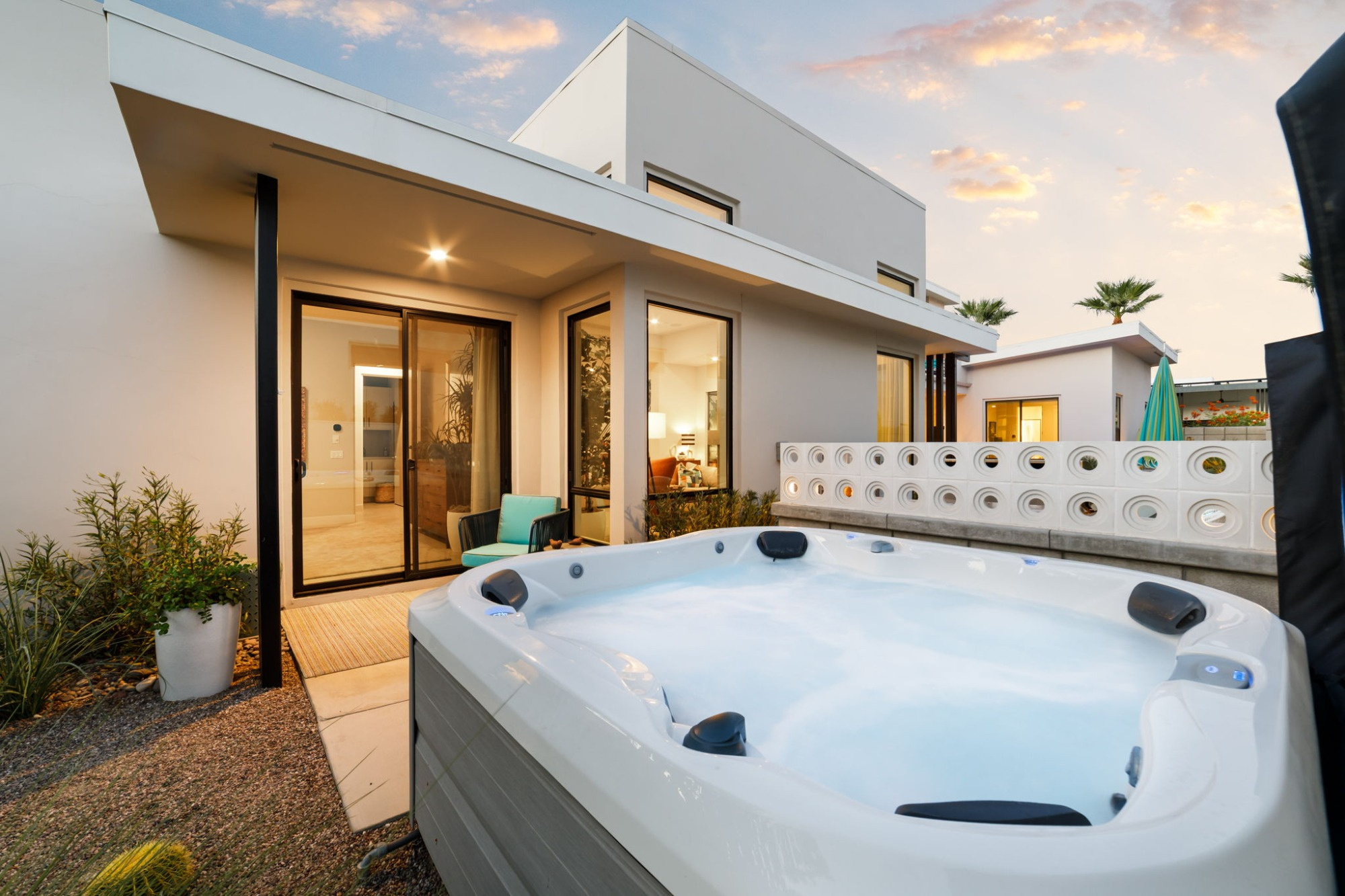 We are excited to introduce 111 Holliday Way, a stunning home in the recently completed Vue development in central Palm Springs. This former model home and end unit boasts one of the largest lot in the development and is ideally located within a pedestrian-friendly distance of downtown Palm Springs. This unique residence features three bedrooms, three and a half bathrooms, and a detached casita, perfect for guest privacy. It comes equipped with owned solar, a pool and spa, a built-in outdoor cooking area, and a two-car attached garage. Inside, you'll find numerous upgrades and thoughtful design elements. The dining area is highlighted by a modern chandelier and impressive 20-foot ceilings. The open-concept kitchen serves as a central gathering space, seamlessly connecting to the living area with a fireplace on one side and the dining area, which leads to an upstairs Library Loft, Private Bedroom and expansive Deck. All bedrooms are en-suite, providing comfort and convenience. The home includes multiple outdoor seating areas offering views both east and west from multiple levels and truly special views of Mt. San Jacinto. The home is located within a gated community and offers the new owner an abundance of privacy. Some furnishings are available outside of escrow, and a detailed list of upgrades is attached to the listing.